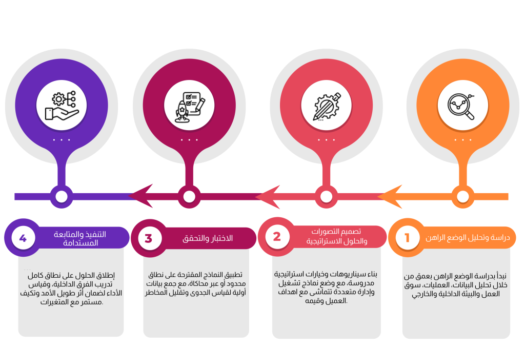نصمم النماذج التشغيلية، الهياكل المؤسسية، والسياسات والإجراءات المقترحة ضمن إطار استراتيجي متكامل.